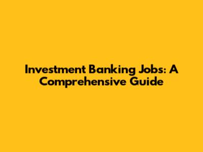 Investment Banking Jobs: A Comprehensive Guide
