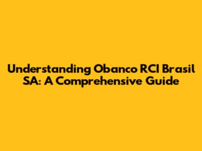 Understanding Obanco RCI Brasil SA: A Comprehensive Guide