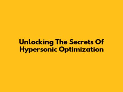 Unlocking The Secrets Of Hypersonic Optimization
