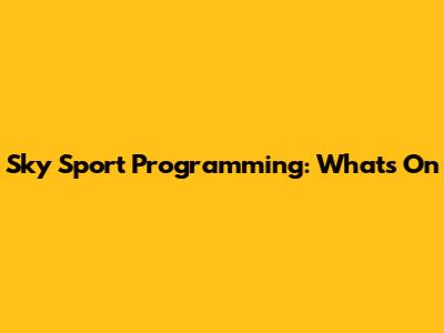 Sky Sport Programming: What's On
