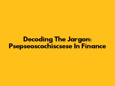 Decoding The Jargon: Psepseoscochiscsese In Finance