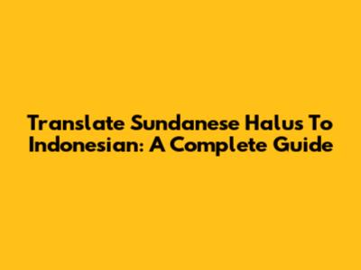 Translate Sundanese Halus To Indonesian: A Complete Guide