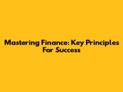 Mastering Finance: Key Principles For Success