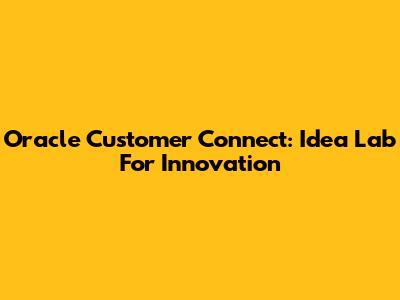 Oracle Customer Connect: Idea Lab For Innovation