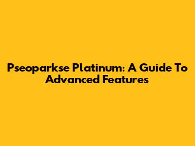 Pseoparkse Platinum: A Guide To Advanced Features