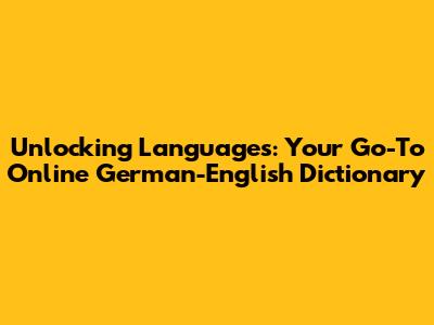 Unlocking Languages: Your Go-To Online German-English Dictionary