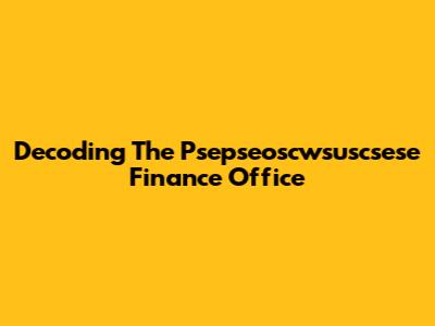Decoding The Psepseoscwsuscsese Finance Office