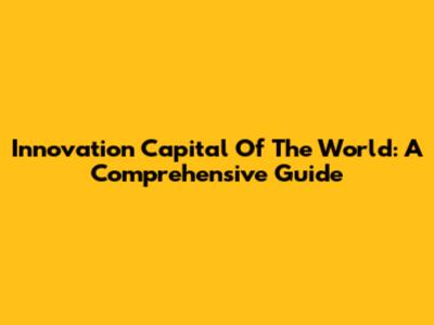 Innovation Capital Of The World: A Comprehensive Guide