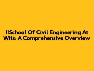 IISchool Of Civil Engineering At Wits: A Comprehensive Overview
