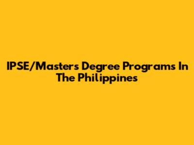 IPSE/Masters Degree Programs In The Philippines