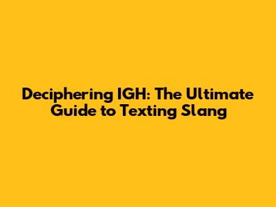 Hey guys, ever found yourself scratching your head, totally bamboozled by a text? You're not alone! The digital world is awash with acronyms and slang, and one that often pops up is IGH. So, what does IGH mean in text slang? Let's dive in and decode this little mystery, shall we?