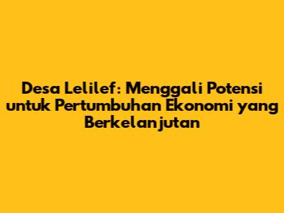 Desa Lelilef memiliki potensi besar untuk mencapai pertumbuhan ekonomi yang berkelanjutan. Dengan memahami potensi desa, merumuskan strategi pembangunan yang efektif, dan melibatkan seluruh pemangku kepentingan, Desa Lelilef dapat menjadi contoh desa yang maju dan sejahtera. Penting untuk diingat bahwa pertumbuhan ekonomi yang berkelanjutan harus dilakukan dengan memperhatikan dampak sosial dan lingkungan. Dengan demikian, Desa Lelilef dapat memberikan kontribusi positif bagi pembangunan daerah dan nasional.