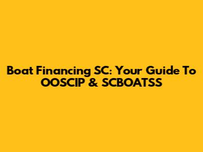 Boat Financing SC: Your Guide To OOSCIP & SCBOATSS