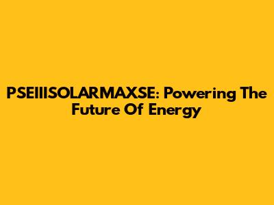 PSEIIISOLARMAXSE: Powering The Future Of Energy