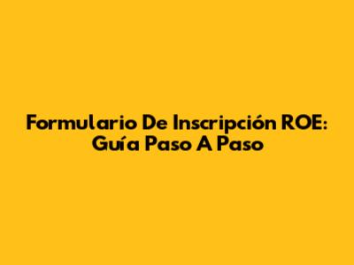 Formulario De Inscripción ROE: Guía Paso A Paso