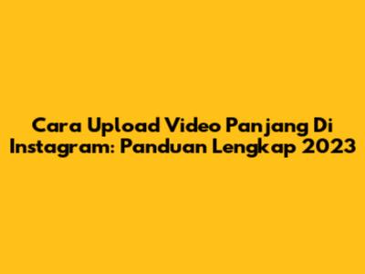 Cara Upload Video Panjang Di Instagram: Panduan Lengkap 2023