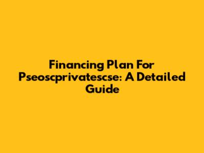 Financing Plan For Pseoscprivatescse: A Detailed Guide