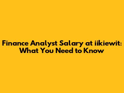 Finance Analyst Salary At Iikiewit: What You Need To Know