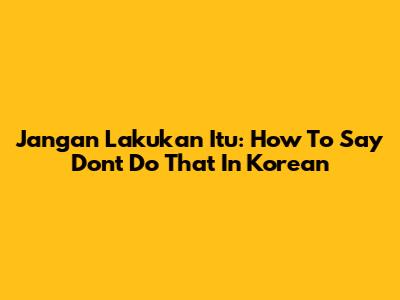 Jangan Lakukan Itu: How To Say "Don't Do That" In Korean