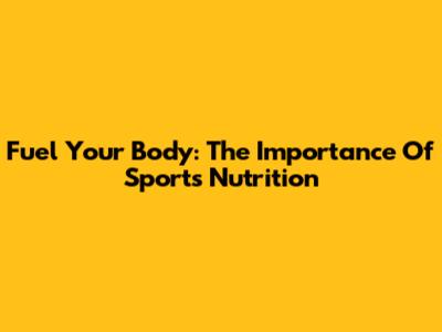 Fuel Your Body: The Importance Of Sports Nutrition