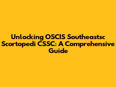 Unlocking OSCIS Southeastsc Scortopedi CSSC: A Comprehensive Guide