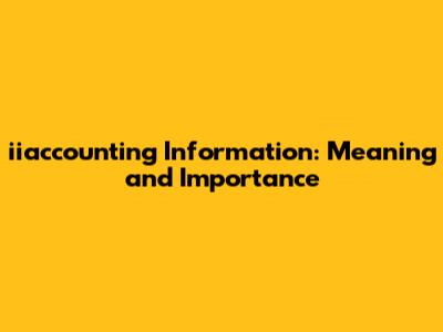 Iiaccounting Information: Meaning And Importance