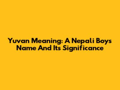 Yuvan Meaning: A Nepali Boy's Name And Its Significance