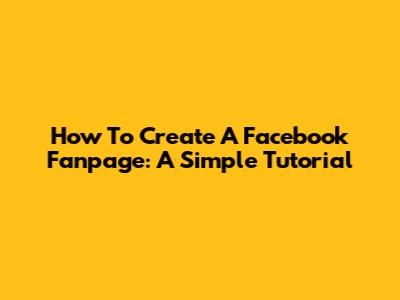How To Create A Facebook Fanpage: A Simple Tutorial