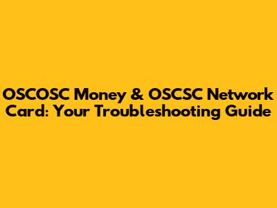OSCOSC Money & OSCSC Network Card: Your Troubleshooting Guide
