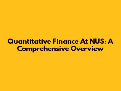 Quantitative Finance At NUS: A Comprehensive Overview