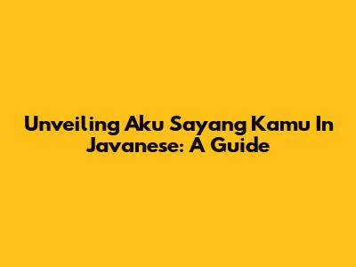 Unveiling 'Aku Sayang Kamu' In Javanese: A Guide