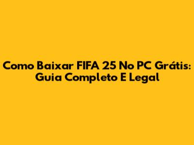 Como Baixar FIFA 25 No PC Grátis: Guia Completo E Legal