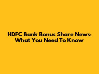 HDFC Bank Bonus Share News: What You Need To Know