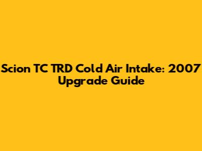 Scion TC TRD Cold Air Intake: 2007 Upgrade Guide
