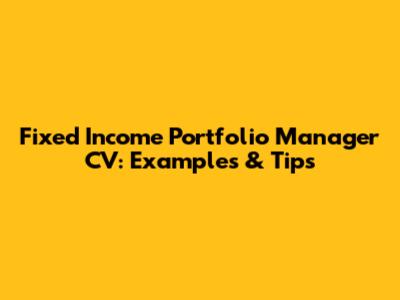 Fixed Income Portfolio Manager CV: Examples & Tips