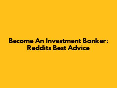Become An Investment Banker: Reddit's Best Advice