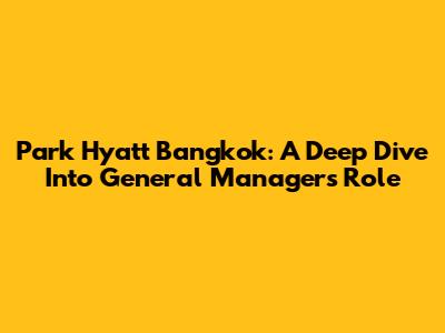 Park Hyatt Bangkok: A Deep Dive Into General Manager's Role