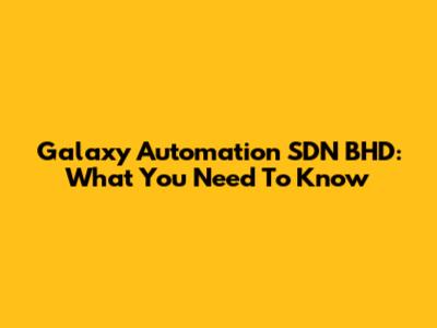 Galaxy Automation SDN BHD: What You Need To Know