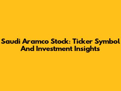 Saudi Aramco Stock: Ticker Symbol And Investment Insights