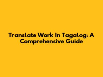 Translate "Work" In Tagalog: A Comprehensive Guide