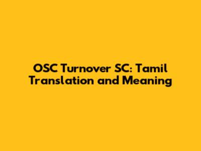 Hey everyone, let's dive into something a bit technical, shall we? Today, we're unpacking the meaning and translation of "OSC Turnover SC" in Tamil. Now, this phrase might seem like a bunch of alphabet soup at first glance, but trust me, understanding it can be super helpful, especially if you're dealing with business or financial documents. We'll break down the meaning of each part, then see how it translates, and finally, give you some real-world examples to make it all click. So, grab a coffee (or tea!), and let's get started, guys!