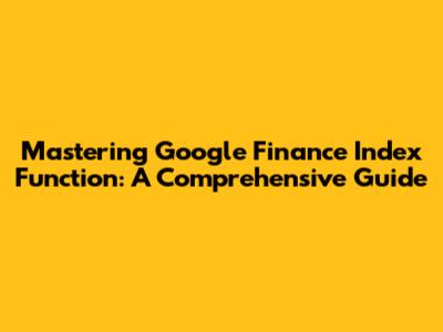 Mastering Google Finance Index Function: A Comprehensive Guide