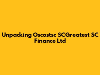 Unpacking Oscostsc SCGreatest SC Finance Ltd