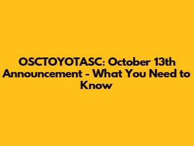 Hey everyone! Get ready, because on October 13th, OSCTOYOTASC dropped some major news, and we're here to break it all down for you. This announcement is a big deal, and if you're even remotely interested in what OSCTOYOTASC is up to, you're going to want to stick around. We're talking about everything from potential updates to exciting new developments, so buckle up and let's dive in. This article is your go-to guide to understanding the OSCTOYOTASC announcement, ensuring you don't miss a single detail. We'll explore the key takeaways, analyze the implications, and discuss what it all means for you. So, whether you're a seasoned enthusiast or just curious, let's unpack the OSCTOYOTASC October 13th announcement together.
