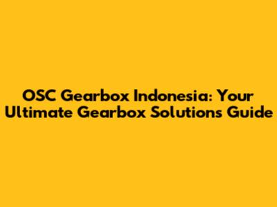 OSC Gearbox Indonesia: Your Ultimate Gearbox Solutions Guide