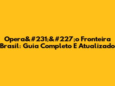Operação Fronteira Brasil: Guia Completo E Atualizado