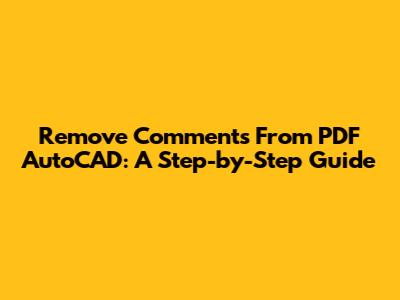 Remove Comments From PDF AutoCAD: A Step-by-Step Guide