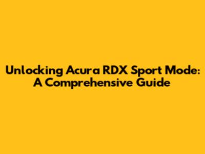 Unlocking Acura RDX Sport Mode: A Comprehensive Guide