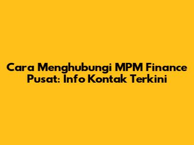 Cara Menghubungi MPM Finance Pusat: Info Kontak Terkini