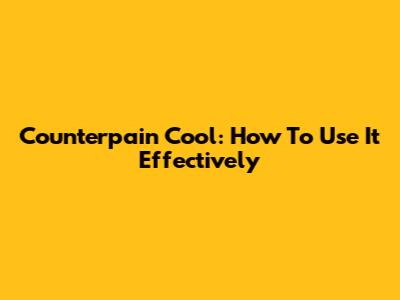 Counterpain Cool: How To Use It Effectively
